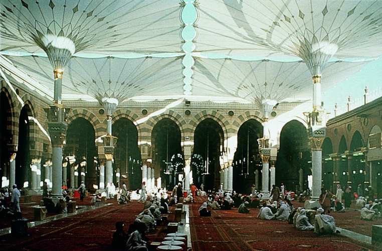 Wandelbare Schirme im Innenhof der Moschee des Propheten in Medina, Saudi-Arabien, 1971 (Bodo Rasch mit Jürgen Bradatsch)