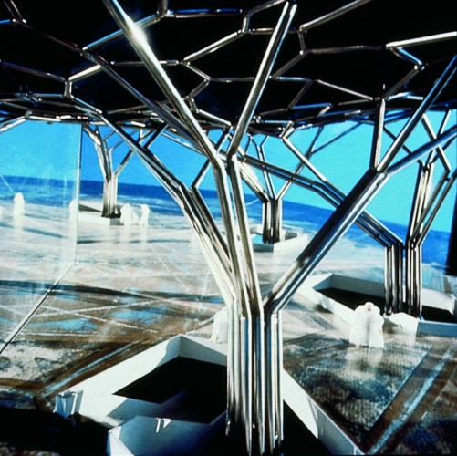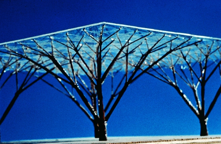 Support pillars of a six-angle gridshell in the Kings Office, Council of Ministers, Majlis al Shura, Riyadh, Saudi Arabia, 1979 (Rolf Gutbrod, Frei Otto, Büro Happold, Ove Arup and Partner)