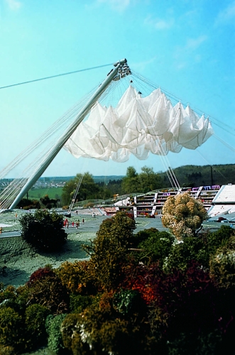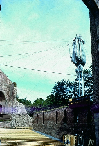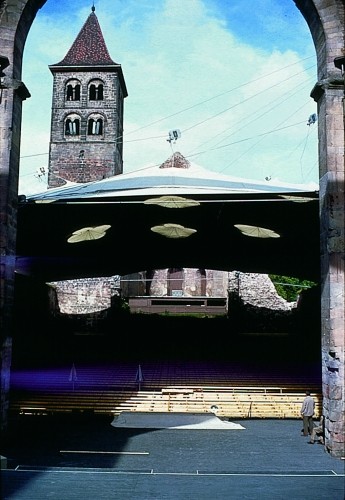 Convertible roof over the open-air theatre of the abbey ruins of Bad Hersfeld, Germany 1968 (together with P. Stromeyer)